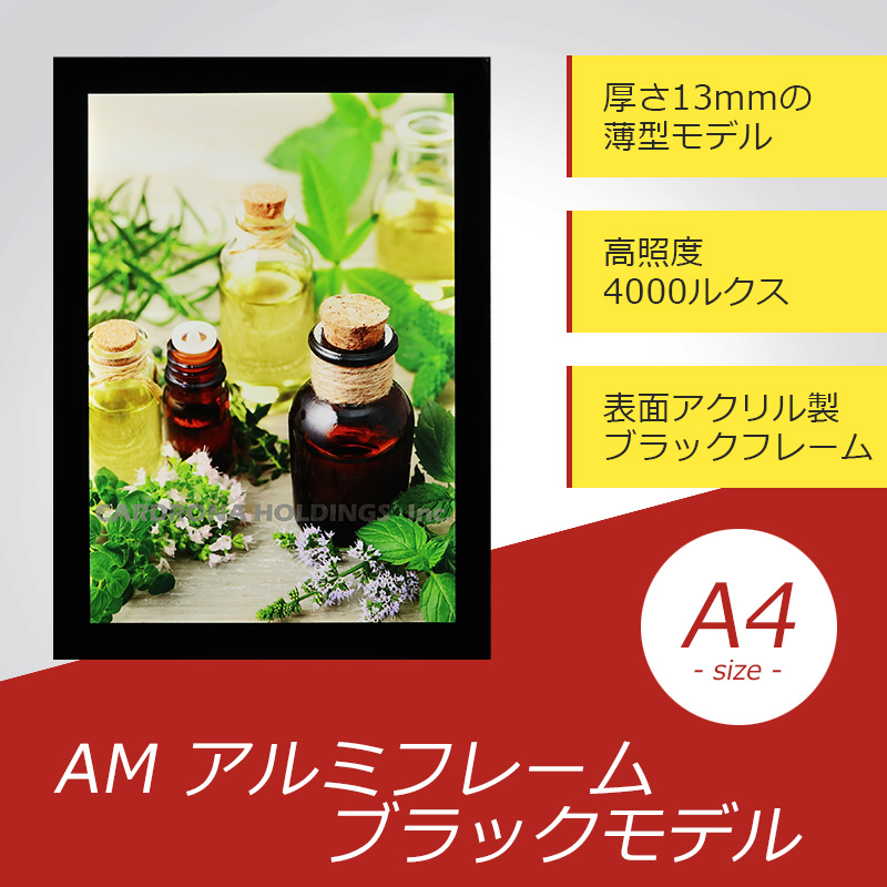 LEDバックライトパネル AM 1mm幅アルミフレーム 黒枠アクリルカバー A4サイズ